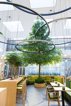 A space that uses naturalistic shapes and forms as fractals and curves can be highly evocative and satisfy biophilic design needs.
